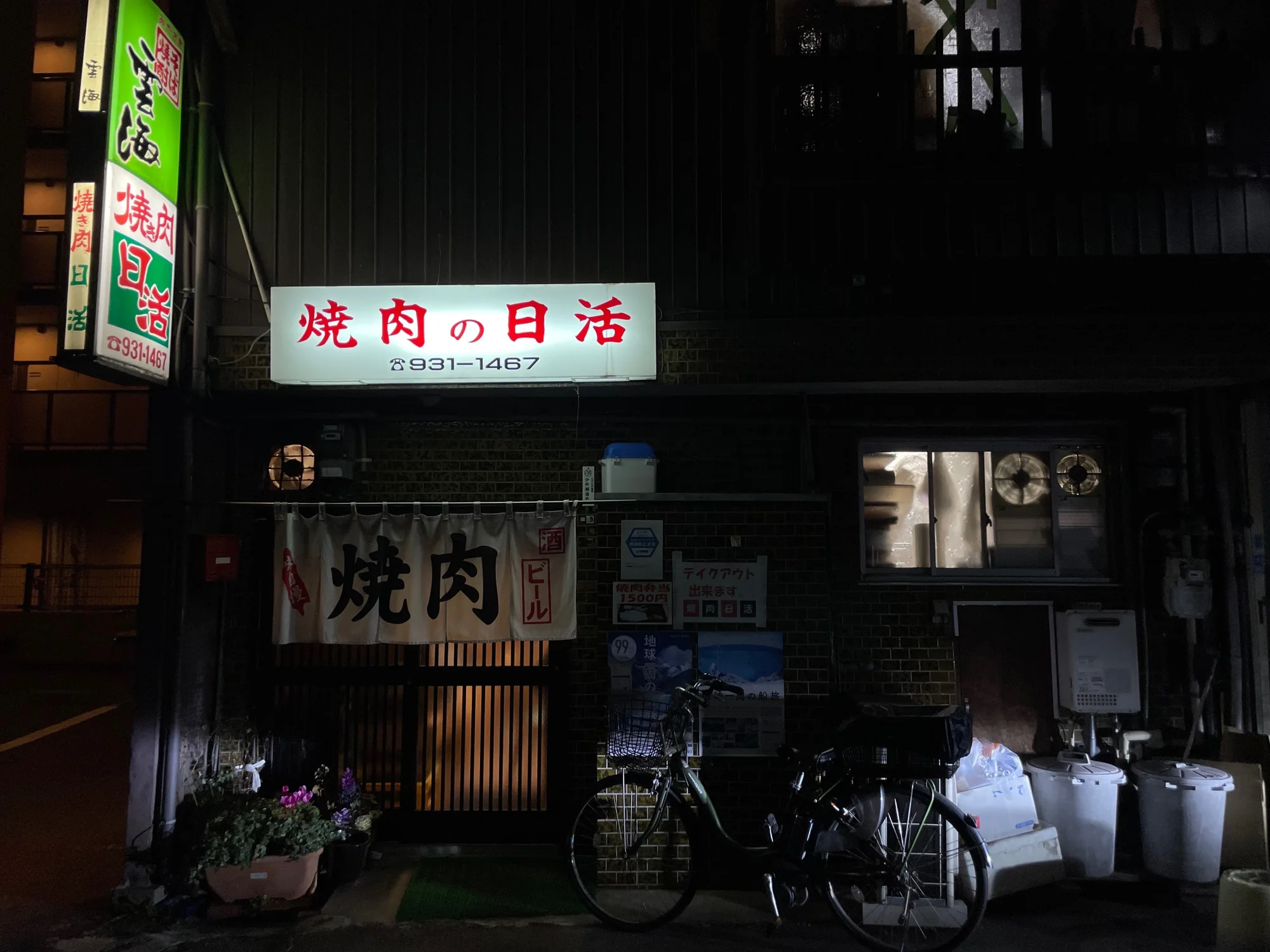 ガールズバーでアペしたら焼肉の日活へ!「全裸監督」に出てきそうな焼肉屋さんというか、街から少し離れたところにある雰囲気たっぷりの焼肉の日活では、北九州名物の炊き肉をたべる。大阪で言うチリトリ鍋みたいな感じで、肉とホルモンを出汁で炊いて、タレをつけて食べる。野菜もたっぷり入っていてスルッと食べれる。