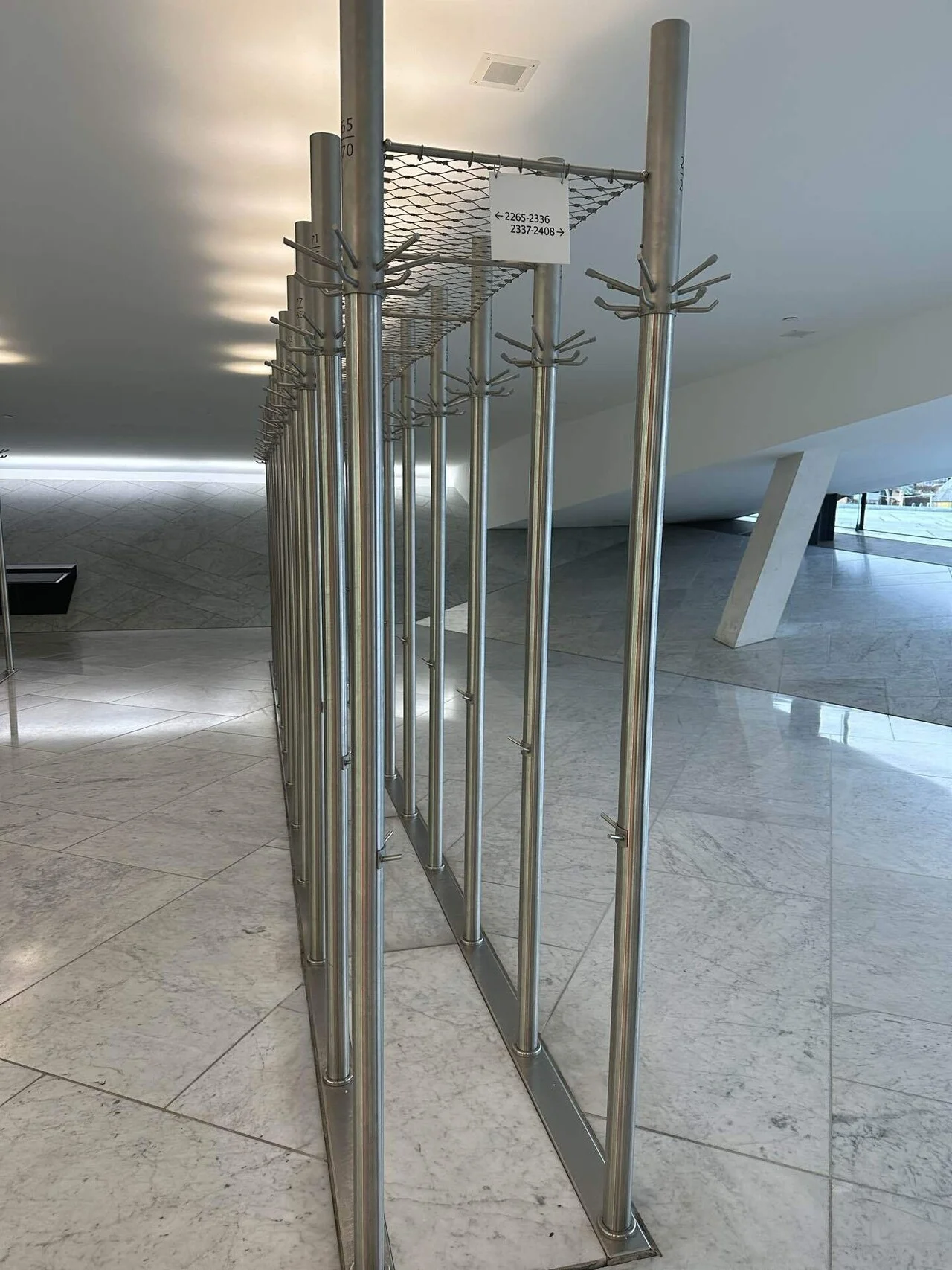 ランチまで少し時間があったのでオペラハウスを見学に行くことに。外観も特徴的だけど内装はもっと独創的。螺旋階段は圧巻の迫力があって、マテリアルも石、木、タイル、LEDの組み合わせがとても面白い。ラフなところと作り込むところ、地域柄ザックりオープンにかけられるコートハンガーなんかもキチンとデザインしてある素晴らしい建物だ。
