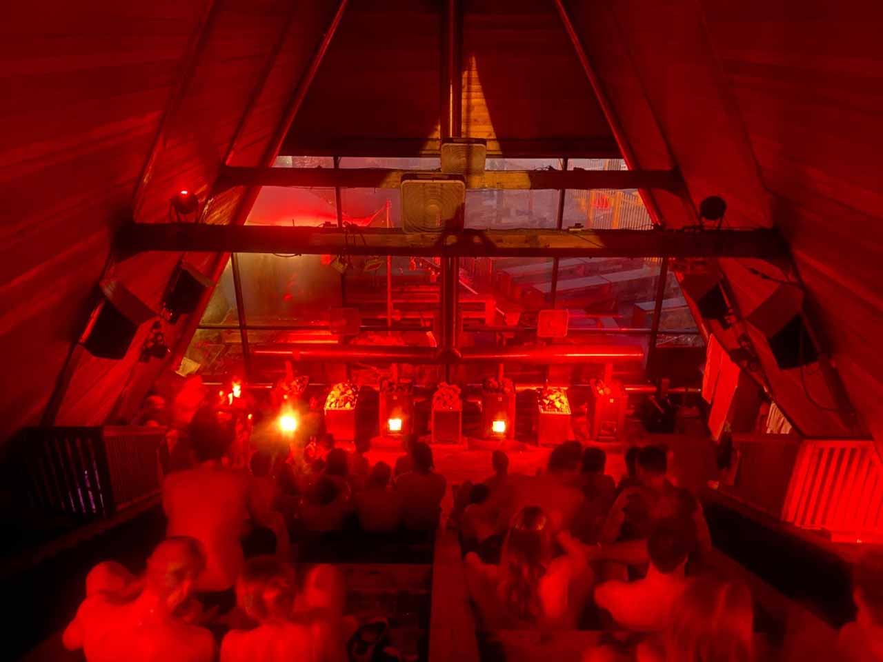 メインのサウナルームは15段くらいあって、礼拝堂みたいな作り、前面は全面のガラス張り、そこには七機のストーブが薪、電気、薪、並びで鎮座する。なんか儀式みたいだ。DJが回し始めると大出力のスピーカーは更に熱気と熱狂を煽る。7機のストーブから登るロウリュの蒸気はそこに座る下段から最上段までの人達を一気に覚醒させる。肉肉しさの境地。