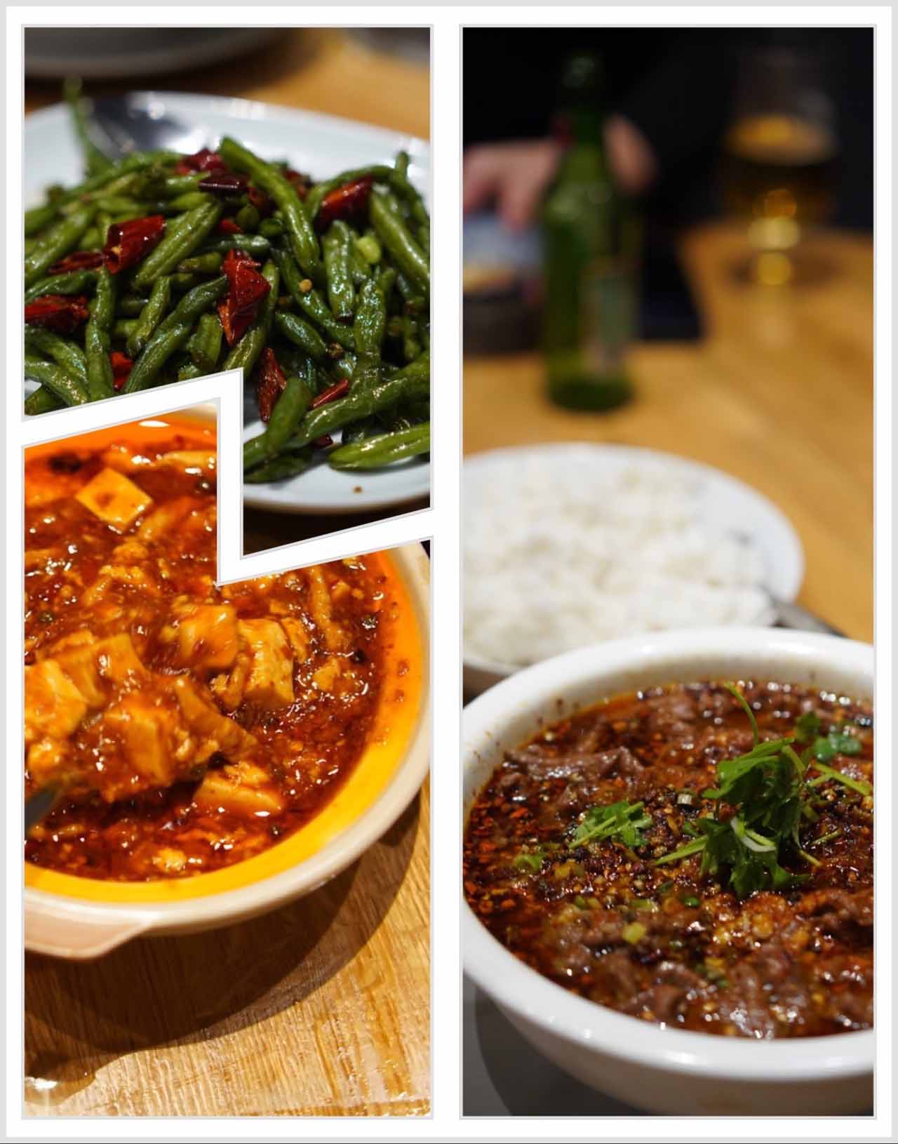 ヘルシンキのトランスファーで久しぶりに会った時から大=ととのえ親方が「メイリンの麻婆豆腐が超旨いから!」って言ってた。考えたら僕らに一週間位先行してヨーロッパに入ってた訳だから、そりゃアジアっぽい食べ物が恋しくなるだろう。という事で、clarion Hotelから徒歩15分ほどのメイリンにやってきた。最初に青島ビールと餃子、ヨーロッパ中華定番の水煮牛肉、そして大オススメの麻婆豆腐。