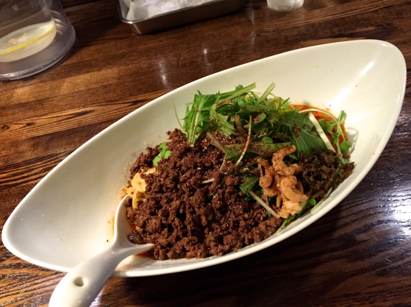こちらは私が一番好きな汁なし担々麺のお店で、ここではエビでじっくりだしを取ったエビ油と、山椒、花椒の痺れる辛さが絶妙にマッチしていて、辛さと旨さを兼ね備えています。
