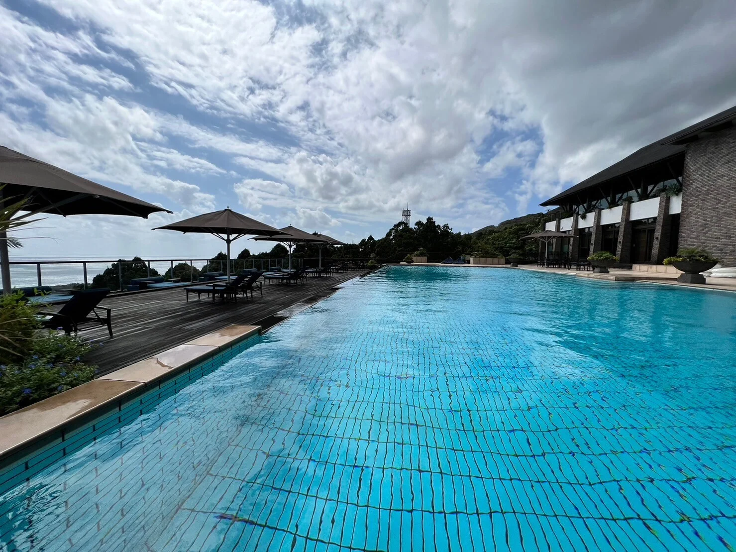 体感18度くらいかな、山の水のプールは水質も水深も、水圧も申し分ない。オーシャンビューのビーチベットで世界遺産の神秘浴。2人も過去1だと喜んでくれた。